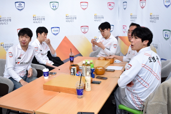 28일(토) 한국기원 바둑TV 스튜디오에서 열린 2025-2026 KB국민은행 바둑리그 준플레이오프 1차전에서 당이페이·박민규·송지훈이 나란히 승리를 거둔 영림프라임창호가 한옥마을 전주를 3-0으로 완파했다.