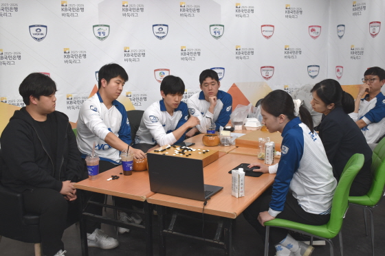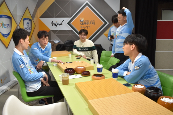 원익이 수려한 합천과 풀세트 접전 끝에 힘겹게 승점을 추가했다. 22일 한국기원 바둑TV 스튜디오에서 열린 2025-2026 KB국민은행 바둑리그 4라운드 3경기에서 원익이 수려한 합천에게 3-2 재역전승을 거뒀다.