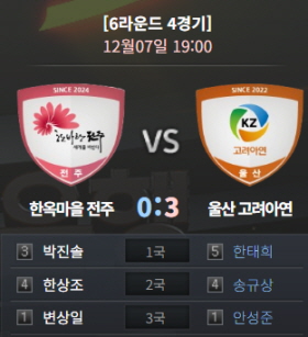 3승 가운데 완봉승이 두 차례나 포함되어 있는 한옥마을 전주를 상대로 울산 고려아연이 완봉승을 거뒀다. 1국과 2국에서 나란히 하위 지명자를 출전시켜 승기를 잡았고, 주장 안성준이 기세 좋게 경기를 마무리했다. 결과적으로 울산 고려아연 박승화 감독의 오더 전략이 빛을 발했다.