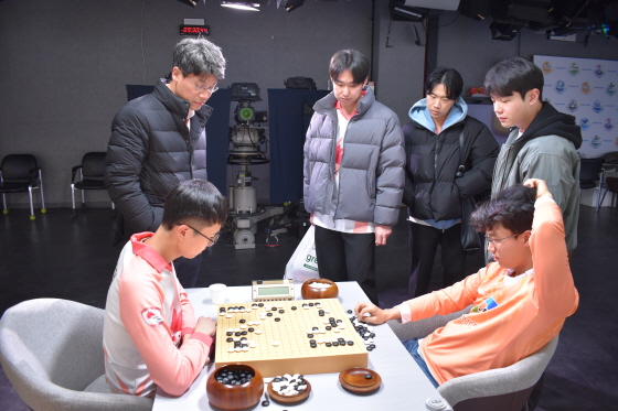 ▲ 3국을 마친 후, 양 팀의 선수들과 양건 감독이 함께 복기에 참여했다.