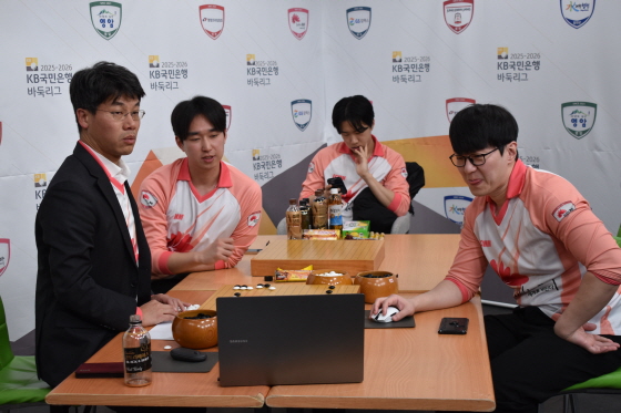 ○● 2025-2026 KB국민은행 바둑리그는 내년 2월까지 8개 팀이 더블리그 방식으로 총 14라운드 56경기를 치른다. 정규리그 상위 4개 팀이 포스트시즌에 진출해 우승 상금 2억 5,000만원을 놓고 최종 대결을 펼친다. 매 경기 5판 3선승제로 진행되며, 기본 시간 1분에 착수할 때마다 15초가 추가되는 피셔 룰 방식이 적용된다.