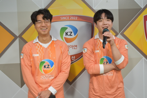 ▲ 승자 인터뷰에서 안성준(왼쪽)은 "매 판 둘 때마다 팀원들과 같이 있는 것이 즐거워서 바둑리그가 기다려진다"며 팀 분위기를 전했고, 최재영은 "그동안 팀원들에게 미안한 마음이 컸는데, 앞으로 최대한 이기면서 남은 빚을 갚겠다"며 각오를 다졌다.