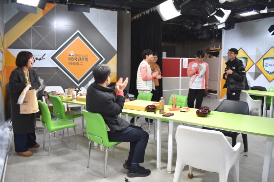 ▲ 신진서(마한의 심장 영암)를 꺾는 대이변을 연출한 강유택(한옥마을 전주)이 검토실에 들어서자 양건 감독과 선수들의 열화와 같은 박수가 쏟아졌다.