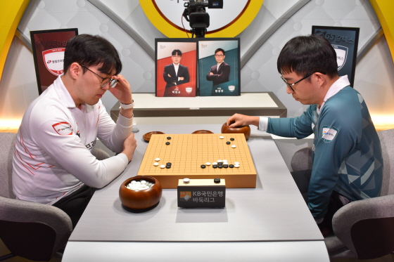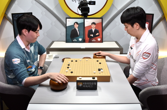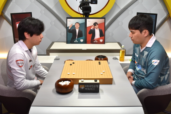 초반부터 김승재가 상대 진영 곳곳을 침투하며 발 빠르게 움직였다. 하지만 오병우가 침착하게 대응하며 대세를 주도해갔다. 반격을 모색하던 김승재의 승부수가 터졌다. 하변에 잡혀있던 두 점을 움직이는 교란 작전으로 형세를 뒤집는데 성공했다. GS칼텍스가 2-0으로 영림을 압박했다.