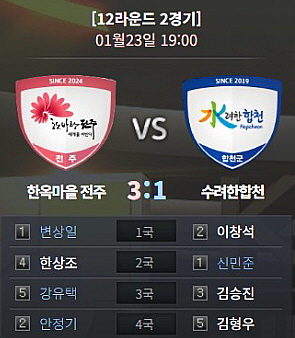 변상일, 232수 백 불계승. 한옥마을 전주 1-0 수려한 합천