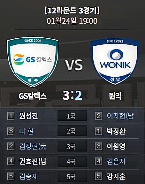 2국 GS칼텍스 나현(3지명) vs 원익 박정환(1지명)