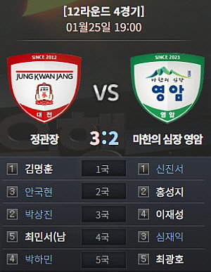 2국 정관장 안국현(3지명) vs 마한의 심장 영암 홍성지(2지명)
