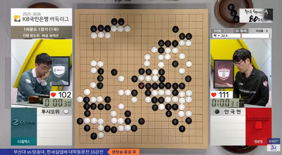 ▲ 앞선 장면에서 불과 7분 뒤, 상대의 실착이 등장하자 안국현의 0.3집 우세로 돌아선 장면