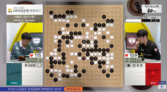 흑을 잡은 안국현의 근소한 우세로 흐르던 바둑은 우변 흑돌을 수습하는 과정에서 급격하게 투샤오위에게 기울었다. AI 예측으로 한때 30집 이상 앞서는 백의 일방적인 흐름이 이어졌다. 하지만 중앙 전투에서 백의 실착이 나오면서 판세는 요동쳤다. 무려 329수, 1시간 19분의 혈투 끝에 백의 반집승.