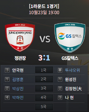 이날 대국에 앞서 다른 6개 팀 감독들은 모두 GS칼텍스의 승리를 예상했지만, 결과는 뜻밖에도 순수 토종팀 정관장의 기분 좋은 첫 승이었다.