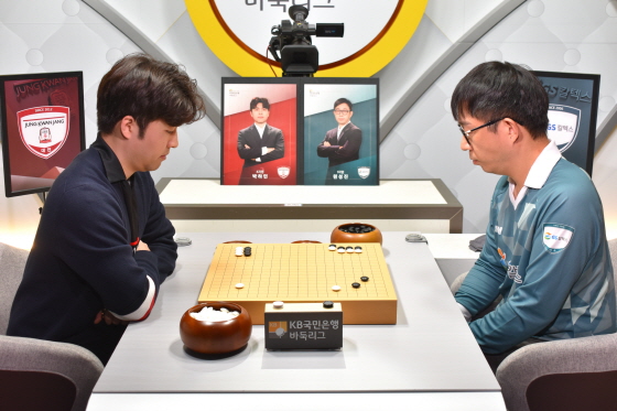 대이변이 일어났다. 상대 전적 2승 7패로 절대 열세였던 김승재가 정관장 주장 김명훈을 제압한 것이다. 좌하귀 전투에서 승기를 잡은 김승재가 초읽기에도 흔들림 없이 승부를 마무리했다. GS칼텍스가 2-1로 전세를 뒤집었다.