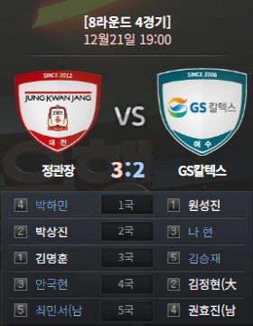 4국 정관장 안국현(3지명) vs GS칼텍스 김정현(2지명)
