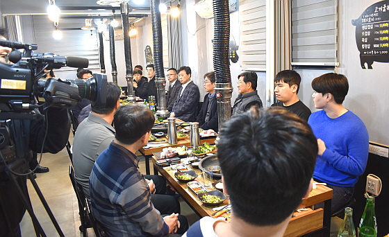 ▲ 전날 저녁 열린 환영 만찬에는 양 팀 선수단을 비롯해 합천군 체육회, 바둑협회 등 40여 명의 관계자가 참석해 우의를 다졌다.