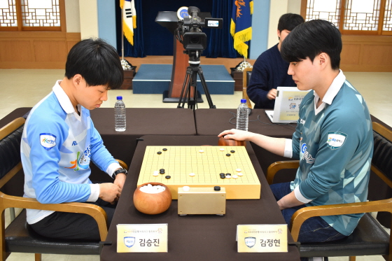 초반 기민한 행마를 보인 김승진이 주도권을 쥐었다. 열세를 느낀 김정현이 반상 곳곳에서 난전을 유도했다. 우변에서 중앙으로, 중앙에서 상변으로 전단을 구하며 전세를 뒤집는데 성공했다. 김정현의 역전극으로 GS칼텍스가 1-1 동점을 만들었다.