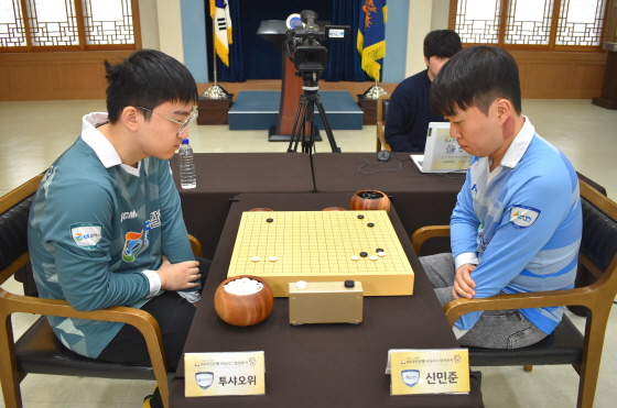 양 팀의 운명을 가를 중요한 길목에서 LG배 챔피언 신민준과 특급 용병 투샤오위가 만났다. 전날 만찬장에서 투샤오위에게 원하는 대국 상대를 묻자 주저 없이 신민준을 꼽았는데, 바람대로 이뤄졌다. 상대 전적은 신민준이 2전 2승.