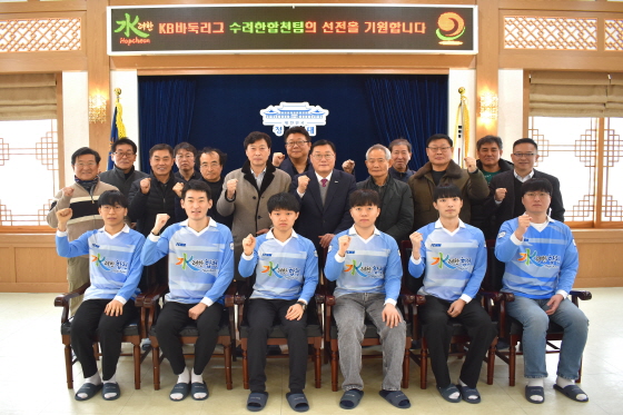 ▲ 합천 투어 첫 대국을 앞두고 수려한 합천 선수단이 합천군 관계자들과 함께 소중한 추억을 남겼다.