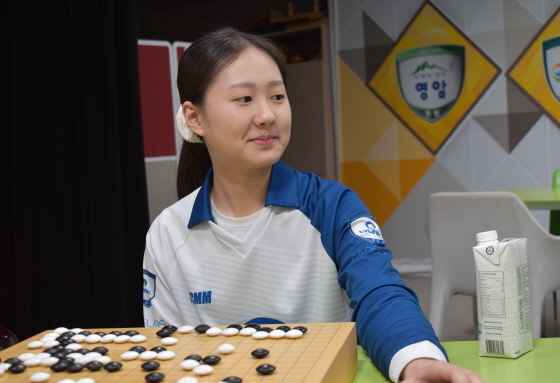 ▲ 정규리그 우승팀 주장 안성준(울산 고려아연)마저 제압하며 시즌 8승 3패로 맹위를 떨친 홍일점 바둑리거 김은지(원익)