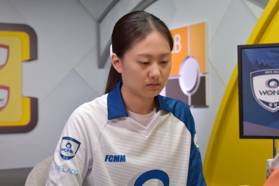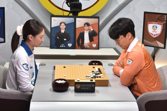 김은지가 정규리그 우승 팀 주장 안성준을 압도했다. 하변 전투에서 주도권을 잡은 뒤 완벽한 수읽기로 끝까지 몰아붙였다. 김은지의 완승으로 원익이 기선 제압에 성공했다.