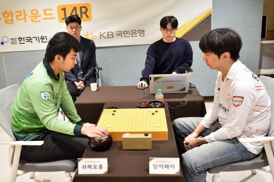 5지명으로 전승 시즌에 도전하는 강유택이 14라운드에서 선봉으로 출격했다. 13라운드까지 9전 9승, 시즌 유일의 무패 행진을 이어온 강유택이 이날 승리하면 10전 10승으로 정규리그를 마감하게 된다. 선발전을 뚫고 5지명으로 합류한 선수의 시즌 전승은 바둑리그 역사상 전무후무한 기록이다.