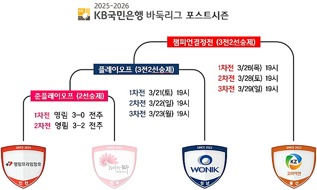 핸디캡을 안고도 준플레이오프를 통과한 영림프라임창호는 오는 21일(토) 정규리그 2위 원익과 플레이오프에서 맞붙는다. 정규리그에서 두 팀은 1승 1패로 장군멍군을 주고받은 바 있다.