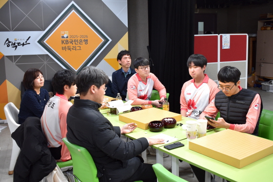 ▲ 믿었던 당이페이와 송지훈의 연패로 일찌감치 막판에 몰렸지만 주장 강동윤의 반격으로 다시 분위기가 살아난 영림프라임창호 검토실